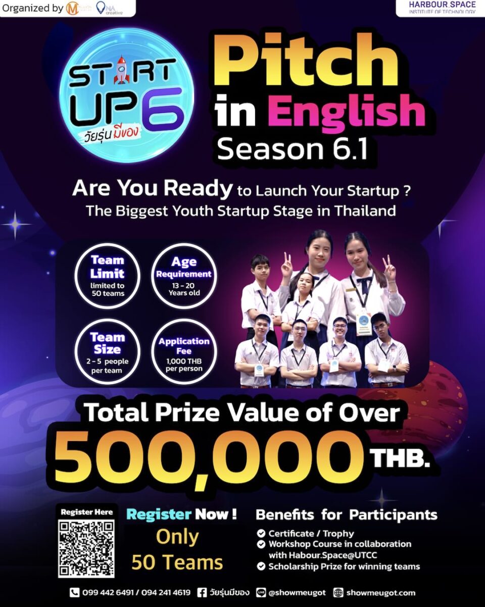 เวทีแข่งขันสตาร์ทอัพระดับนานาชาติที่ใหญ่ที่สุดสำหรับเยาวชนไทย ชิงรางวัลและทุนการศึกษามูลค่ารวมกว่า 500,000 บาท!