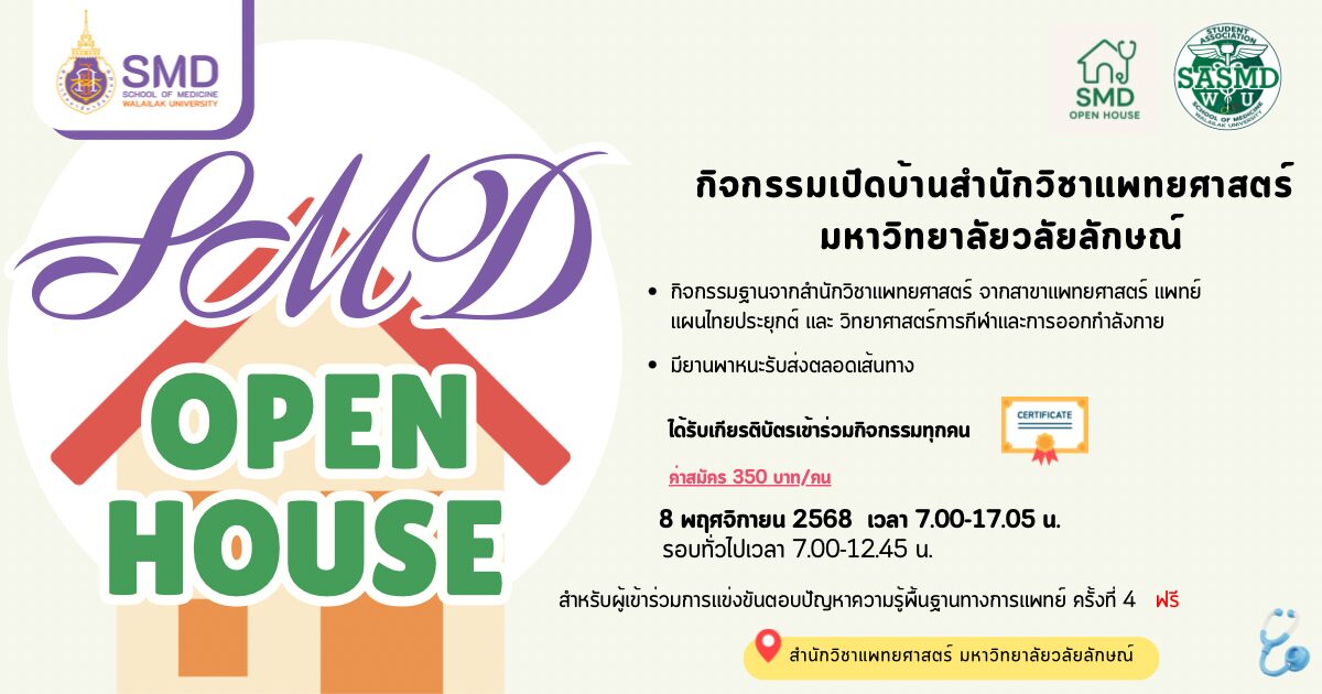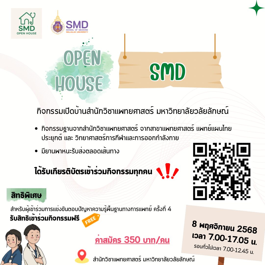 หากมีข้อสงสัยติดต่อทางเพจ fackbook SMD Open House เปิดบ้านสำนักวิชาแพทยศาสตร์ มหาวิทยาลัย
