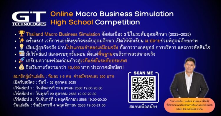 🏆 Thailand MBS ครั้งแรก! เปิดเวทีให้นักเรียน ม.ปลายสัมผัสการแข่งขันธุรกิจเสมือนจริง พร้อมเวิร์กชอปสอนครบทุกขั้นตอน 🚀 ชิงรางวัลรวมกว่า 10,000 บาท!
