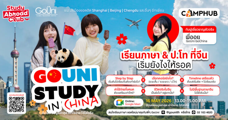 GoUni Study in China 101 เรียนภาษา & ป.โท ที่จีนเริ่มยังไงให้รอด Online Session ฟังฟรีบน Google Meet งานสัมมนาสำหรับน้องๆ และคนทำงาน ที่อยากไป เรียนต่อประเทศจีน