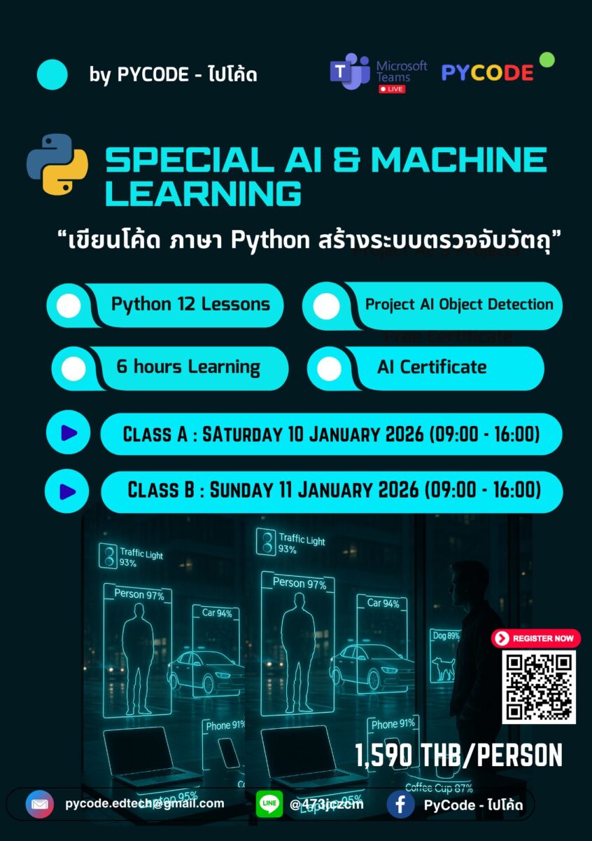 กิจกรรมออนไลน์ผ่าน Microsoft Teams รอบเรียนมี 2 รอบ รอบที่ 1: วันเสาร์ที่ 10 มกราคม 2569 รอบที่ 2: วันอาทิตย์ที่ 11 มกราคม 2569 เวลา 09:00 - 16:00 น.