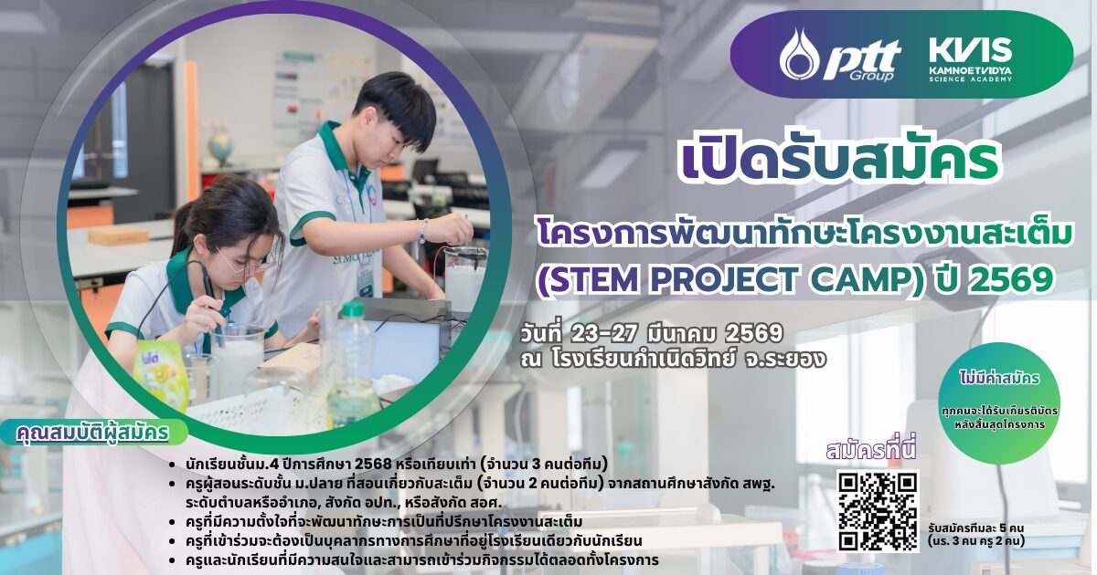 โครงการพัฒนาทักษะโครงงานสะเต็ม (STEM Project Camp) 2569 🔬🚀