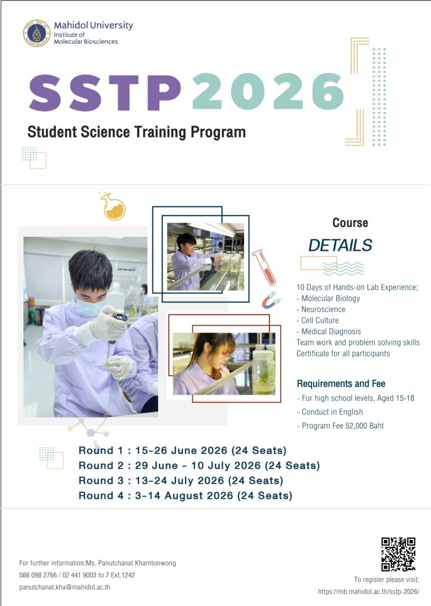 Join us at SSTP 2026 – Student Science Training Program, organized by the Institute of Molecular Biosciences, Mahidol University.