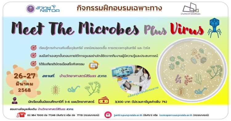 เปิดรับสมัครน้องม.3-6 ที่อยากท่องโลกจุลินทรีย์และไวรัสสุดเข้มข้นไปกับทีมงานจากสวทช. มาลองเพาะเชื้อจริง สำรวจสิ่งมีชีวิตตัวจิ๋ว และนับจำนวนไวรัสด้วยตัวเอง วันนี้สมัครเข้าค่ายกันได้เลย!