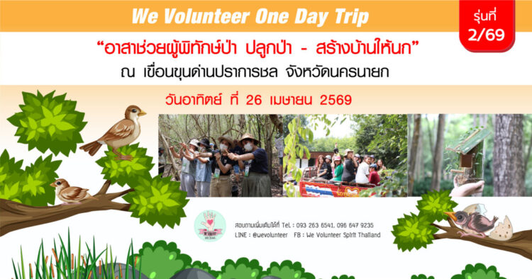 ขอเชิญชวนน้องๆ และผู้สนใจเข้าร่วมกิจกรรม "อาสาช่วยผู้พิทักษ์ป่า ปลูกป่า – สร้างบ้านให้นก" ณ เขื่อนขุนด่านปราการชล จังหวัดนครนายก วันอาทิตย์ ที่ 26 เมษายน 2569
