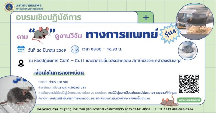 โอกาสสุดพิเศษ ที่น้องๆม.ปลายจะได้ใกล้ชิดกับ หนูเม้าส์ตัวน้อย🐭! สัตว์ทดลองที่มีบทบาทสำคัญต่อทางการแพทย์มากมาย ทำกิจกรรมกับหนูเม้าส์ตัวจริงเสียงจริง 1 วันเต็มๆ สายหมอ/วิทย์สุขภาพห้ามพลาด!!