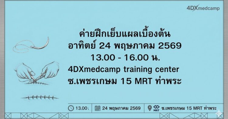มาเป็นส่วนหนึ่งของการฝึกทักษะการเย็บแผลและการดูแลแผลกันเถอะ! ร่วมเข้าร่วมค่ายฝึกเย็บแผล เพื่อเรียนรู้เทคนิคการเย็บแผล เหมาะสำหรับน้องๆที่ต้องการเรียนต่อสายวิทย์สุขภาพ