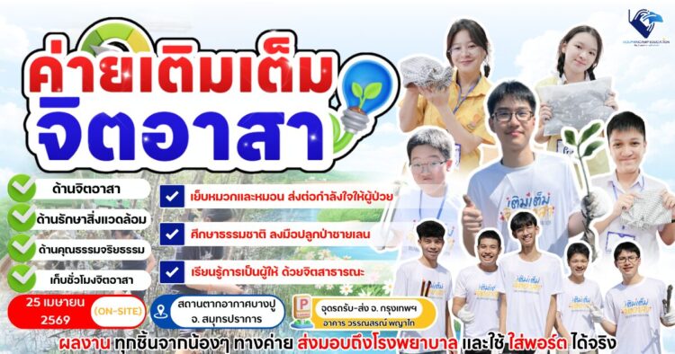 กลับมาอีกครั้ง! ค่ายเติมเต็มจิตอาสา รุ่นที่3 ร่วมกิจกรรมจิตอาสา บริจาคจริง เพื่อสังคม พร้อมรับเกียรติบัตรและรูปกิจกรรม ครบจบในค่ายเดียว สนใจคลิกเลย!