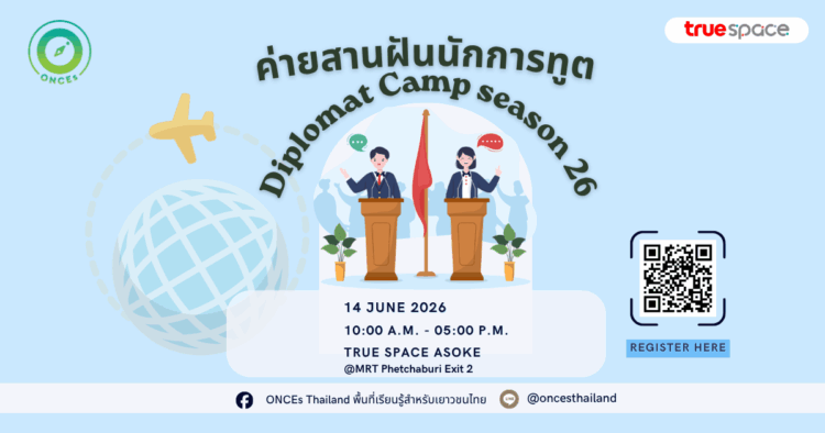 โอกาสสำหรับการเรียนรู้เส้นทางและการทำงานนักการทูต ร่วมเปิดโลกการเรียนรู้ พาน้องๆไปเจาะลึกเบื้องหน้า-หลังของอาชีพ เรียนรู้และเข้าใจอาชีพผ่านตัวจริง พร้อมกิจกรรม Workshop และเนื้อหาแสนสนุก