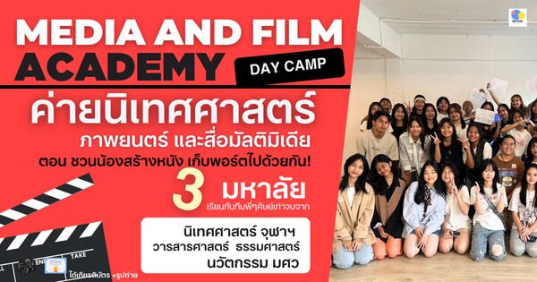 ค่าย Media & Film Academy สร้างผลงานใส่พอร์ต ฝึกกำกับ เขียนบท และถ่ายทำจริง พร้อมคำแนะนำจากผู้เชี่ยวชาญและรุ่นพี่สายตรง จบจาก 3 มหาลัย (CU /TU /SWU)