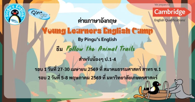 Pingu’s English ชวนน้องๆ ป.1-4 มาร่วมเรียนรู้ภาษาอังกฤษนอกห้องเรียนด้วยการลงมือปฏิบัติผ่านการทำกิจกรรมที่หลากหลายในค่ายภาษาอังกฤษ ธีม Follow the Animals Trails