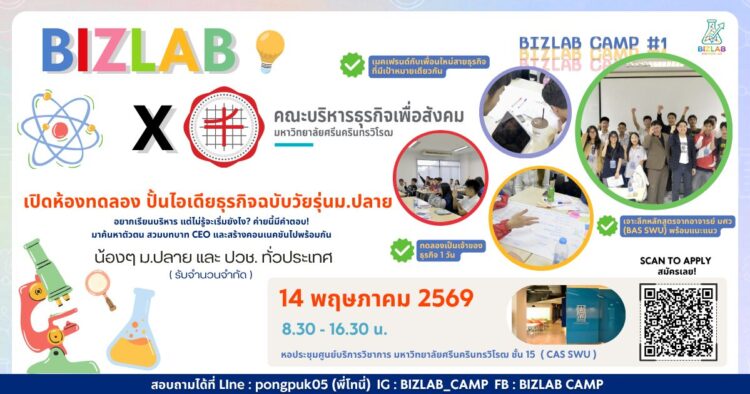 ค่ายจำลองธุรกิจสุดเอ็กซ์คลูซีฟจาก BIZLAB x คณะบริหารธุรกิจเพื่อสังคม มศว (BAS SWU) ชวนน้อง ม.ปลาย สวมบท CEO 1 วันเต็ม ลงมือคิดธุรกิจจริง