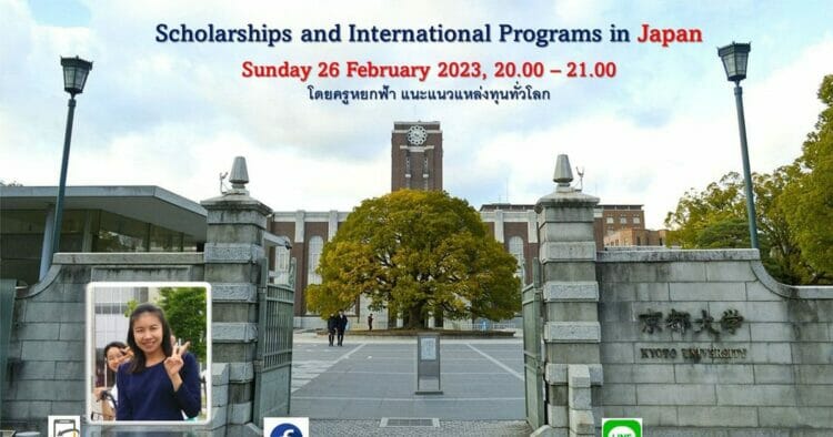 เจาะแหล่งทุน 100% ในญี่ปุ่น "Scholarships and International Program in Japan" ในวันอาทิตย์ที่ 26 กุมภาพันธ์ 2566 เวลา 20.00 -21.00 น. ถามตอบกับครูหยกฟ้าและอดีตนักศึกษาทุน MEXT