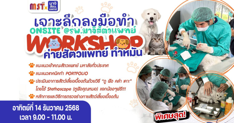 สำหรับน้องๆ ที่มีความฝันอยากเป็นสัตวแพทย์ MST MED ชวนมา Workshop สุด Exclusive 🗓️ วันอาทิตย์ที่ 14 ธ.ค. 68 ⏰ เวลา 09.00 - 11.00 น. ประเมินอาการสัตว์เบื้องต้น ได้รับเกียรติบัตร