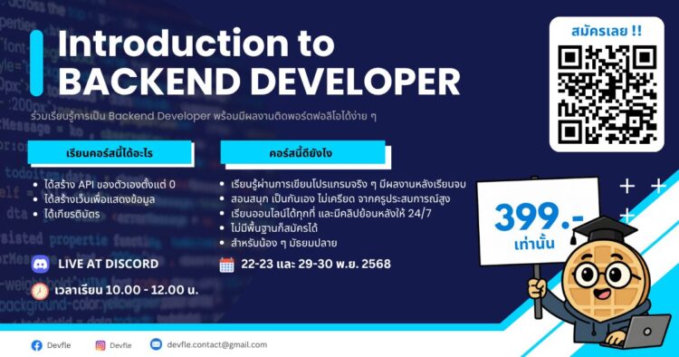 🎉 อยากเข้ามหาลัยด้วย Portfolio โค้ดดิ้ง สุดปังไหม? หลักสูตร 8 ชั่วโมงนี้ สอนเข้มข้นตั้งแต่พื้นฐาน ไปจนถึงการ สร้าง API ด้วย Node.js! น้องๆ ม.ปลายจะได้ผลงานจริงไปใช้ยื่นได้อย่างมั่นใจ!