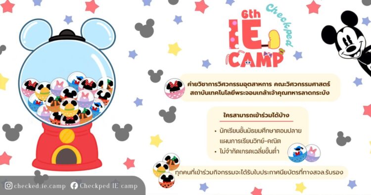 กลับมาอีกครั้งสำหรับค่าย Checkped ครั้งที่ 6 ค่ายที่เปิดโอกาสให้น้องๆ มัธยมปลายมาทำความรู้จักกับภาควิชาวิศวกรรมอุตสาหการ ค่ายนี้มีทั้งความรู้และกิจกรรมสุดสนุก รับรองว่าสนุกมากกว่าที่คิด!
