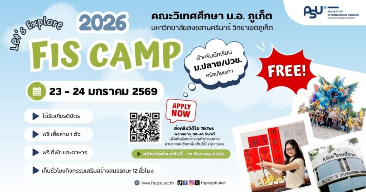 FIS Camp 2026 ก้าวสู่ประสบการณ์แบบ International กับคณะวิเทศศึกษา ม.อ.ภูเก็ต ค่ายสำหรับน้อง ๆ ม.ปลาย / ปวช. / หรือเทียบเท่า โดยไม่มีค่าใช้จ่าย