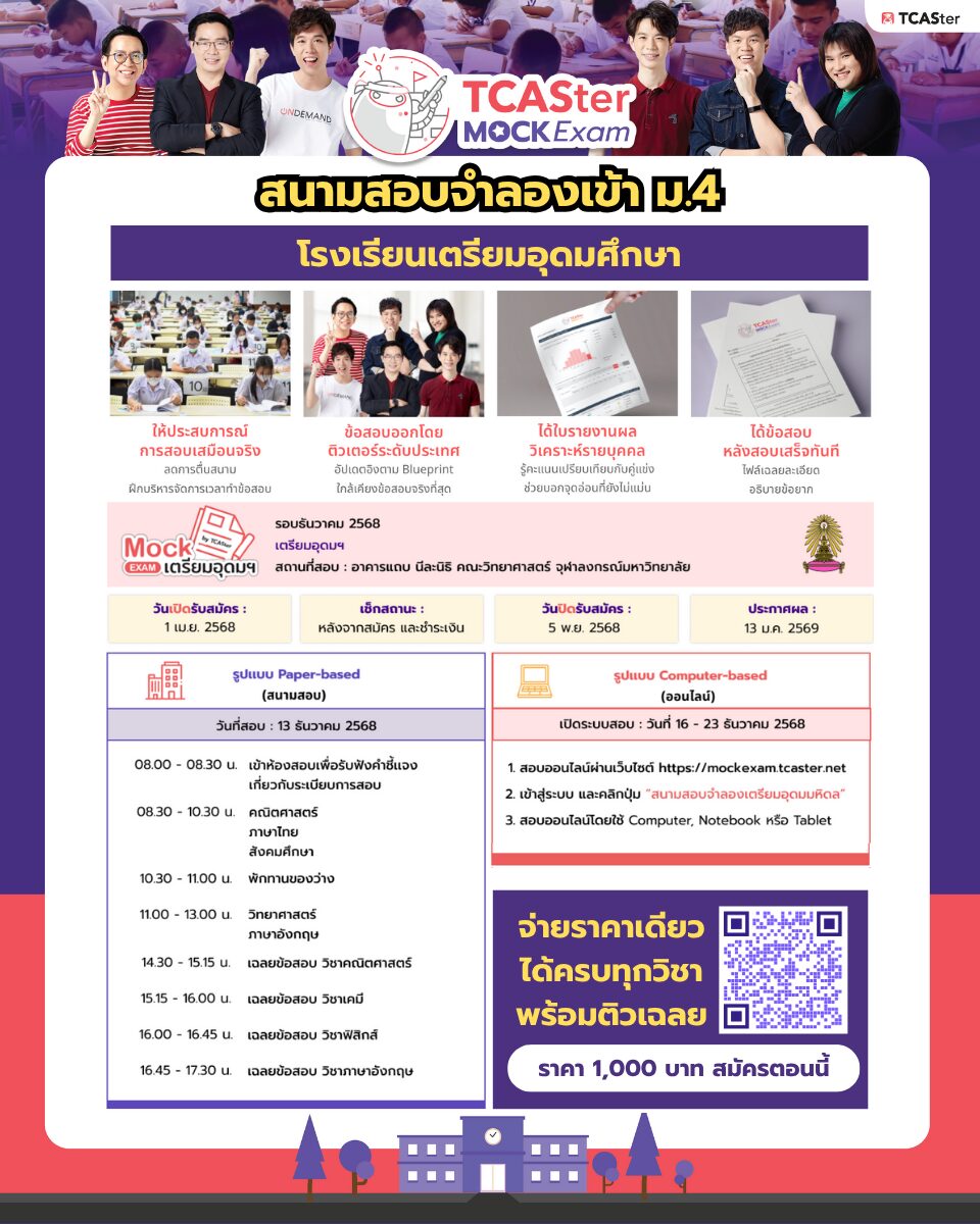 วันสำคัญสำหรับการสอบจำลอง TCASter Mock TU รอบเตรียมอุดมฯ