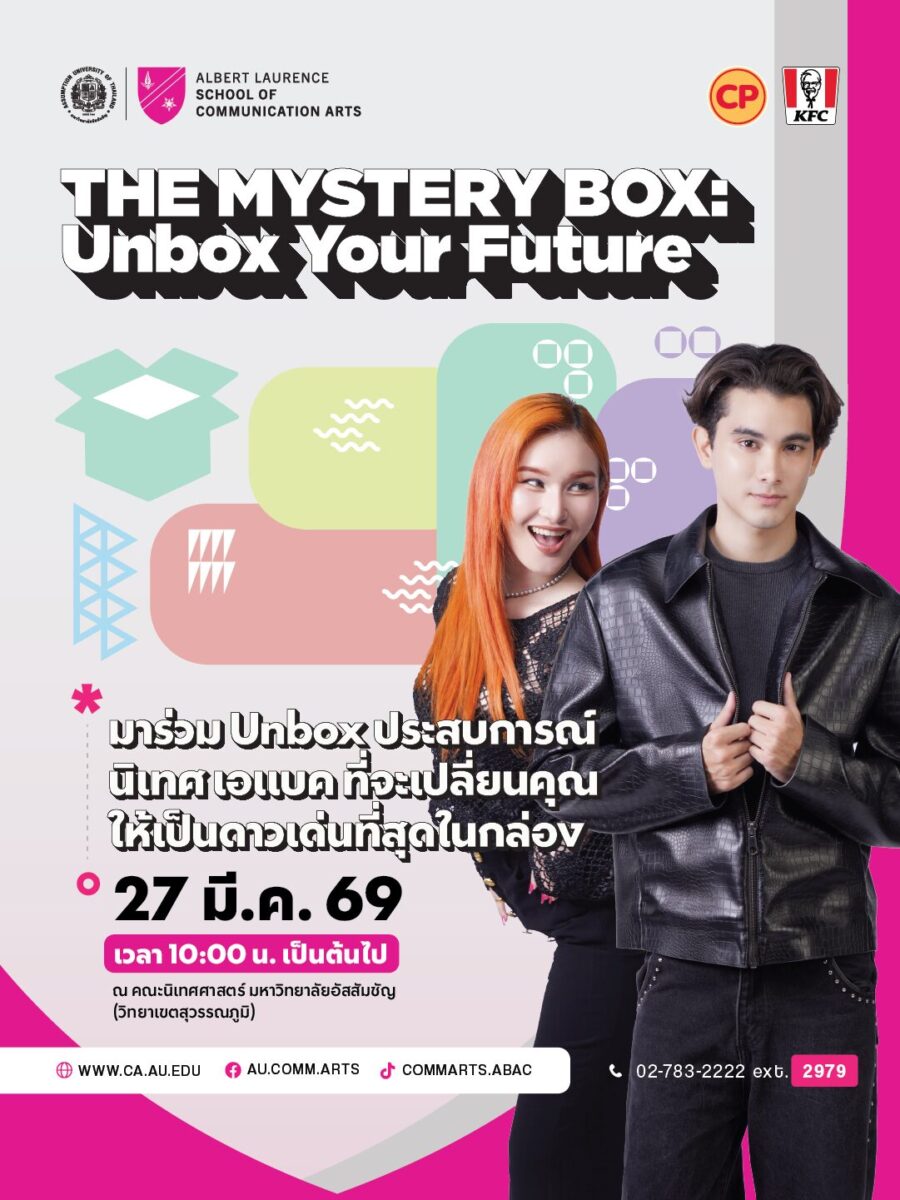 เตรียมพบกับปรากฏการณ์เปิดกล่องสุ่มครั้งใหญ่! คณะนิเทศศาสตร์ มหาวิทยาลัยอัสสัมชัญ ขอเชิญชวนน้องๆ มัธยมปลายและผู้ที่สนใจ มาร่วม Unbox อนาคตไปกับงาน “THE MYSTERY BOX: Unbox Your Future”