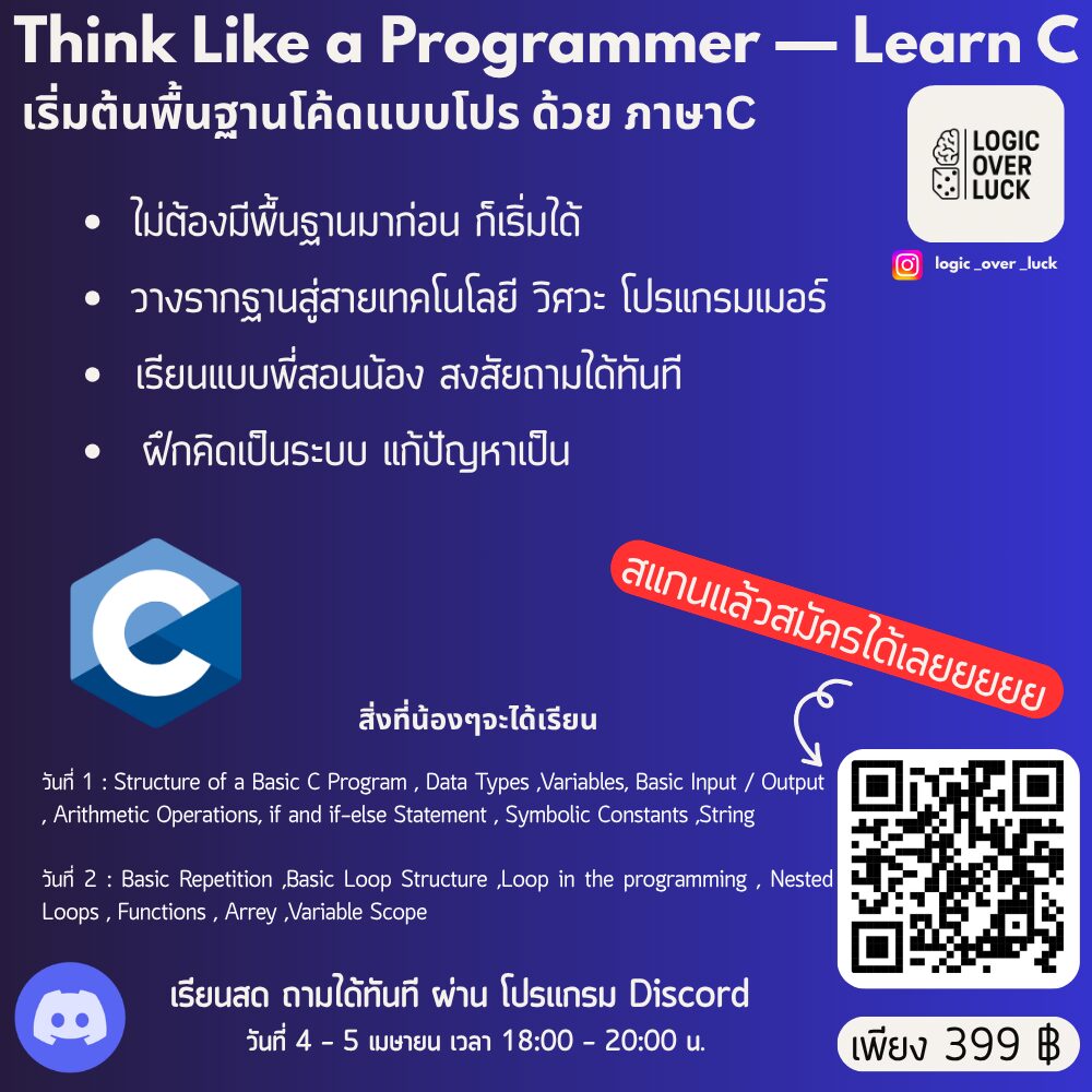 เหมาะสำหรับน้องๆ ม.1 – ม.6 หรือผู้ที่สนใจเขียนโค้ด แม้ไม่มีพื้นฐานก็เรียนได้!