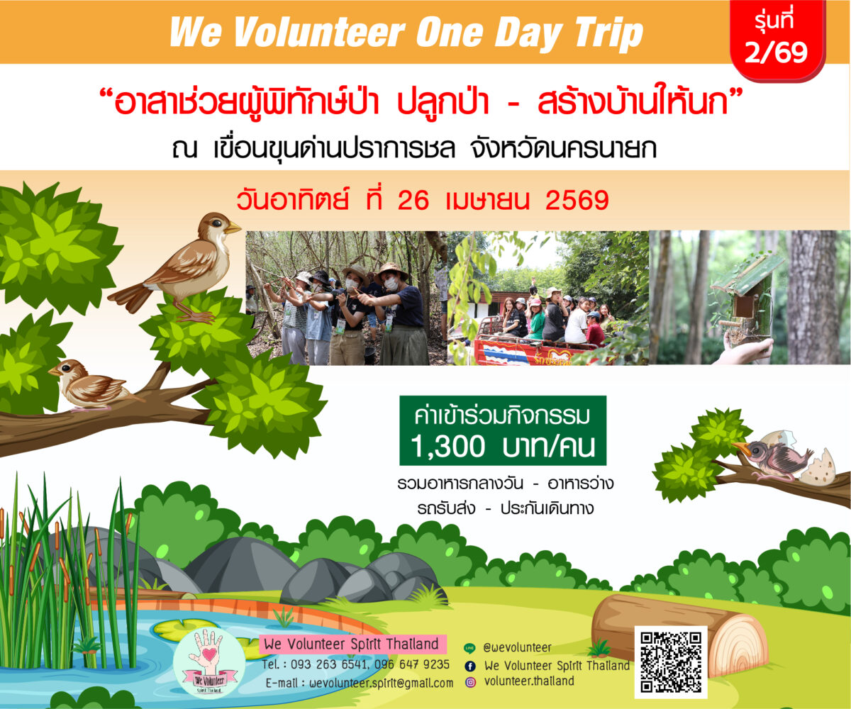 🔥 𝑵𝑬𝑾! เปิดทริปใหม่…สายลุยห้ามพลาด! 🔥 ชวนน้องๆ แท็กเพื่อนมาทำความดีแบบ 𝑶𝒏𝒆 𝑫𝒂𝒚 𝑻𝒓𝒊𝒑 กับกิจกรรม “อาสาช่วยผู้พิทักษ์ป่า ปลูกป่า – สร้างบ้านให้นก” ณ เขื่อนขุนด่านปราการชล จังหวัดนครนายก 🕊️🌱