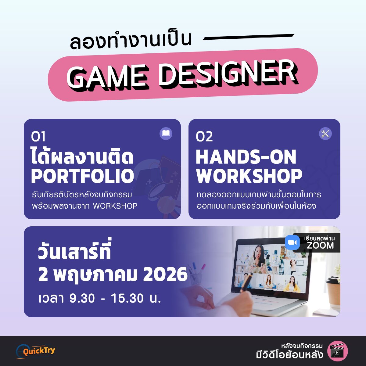 จบกิจกรรมมั่นใจได้เบื้องต้นว่าเราเหมาะกับ Game Designer รึเปล่า ผ่านการลงมือปฎิบัติจริงแม้จะอยู่บ้าน!