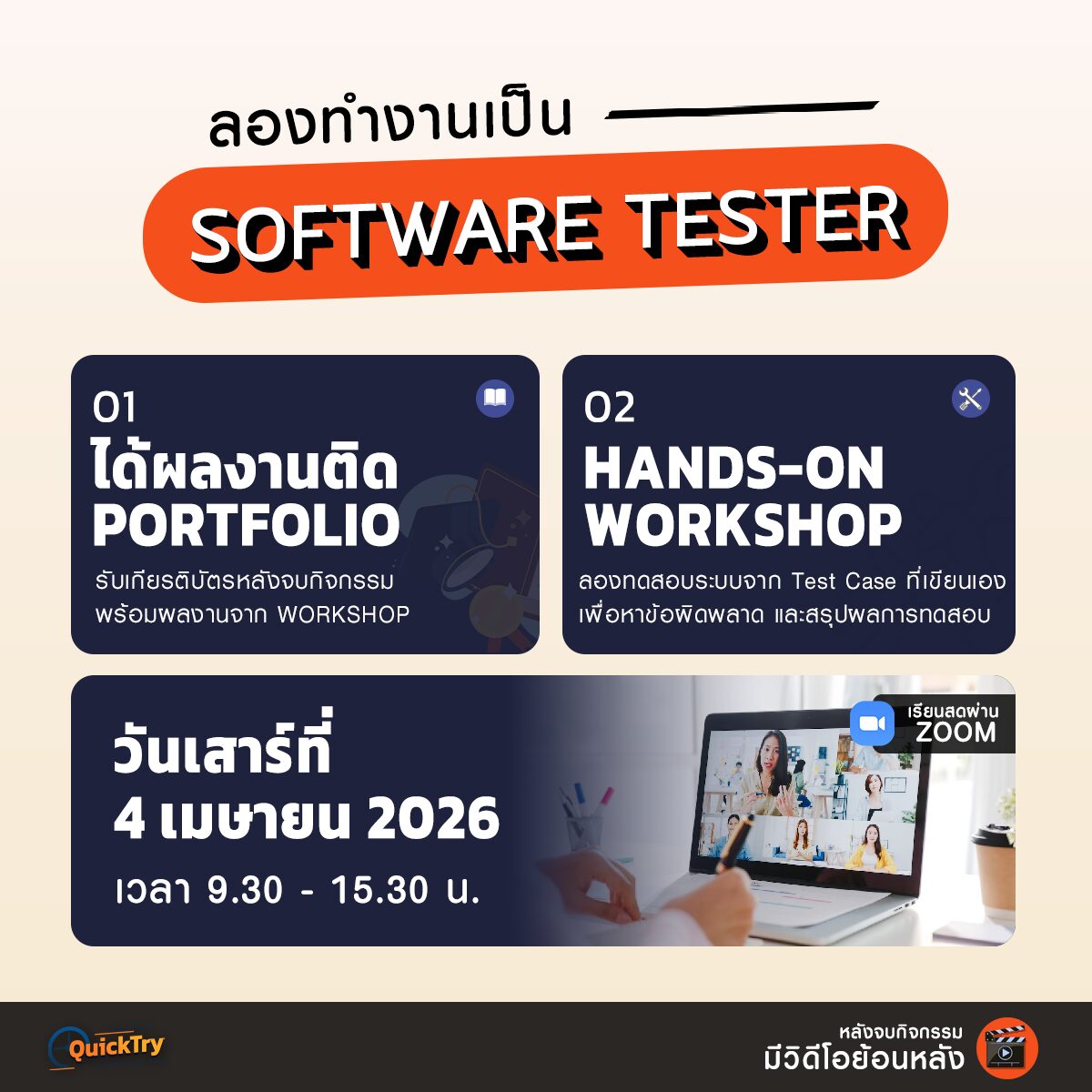 จบกิจกรรมมั่นใจได้เบื้องต้นว่าเราเหมาะกับ Software Tester รึเปล่า ผ่านการลงมือปฎิบัติจริงแม้จะอยู่บ้าน!