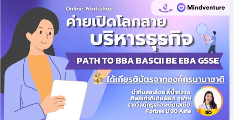 เปิดโลกสายบริหารธุรกิจ PATH TO BBA BASCii BE EBA GSSE ขอเชิญน้องๆ อายุ 14-18 ปี มาเข้าร่วมเวิร์กชอป " Discover Me: ค่ายเปิดโลกสายบริหารธุรกิจ" ค้นพบตัวตน สู่อาชีพที่ใช่!🎓 🔍