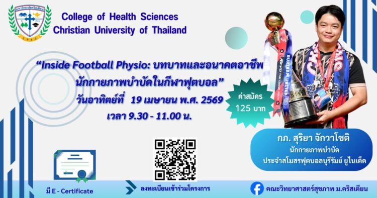 🔥 สายสปอร์ตห้ามพลาด! อยากเป็นนักกายภาพบำบัดให้ทีมฟุตบอลระดับท็อป ต้องเริ่มยังไง? 🔥 มหาวิทยาลัยคริสเตียน ขอเชิญชวนน้องๆ ม.ปลาย ที่มีความฝันและสนใจในสายวิชาชีพกายภาพบำบัด