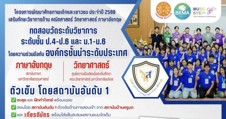 โครงการพัฒนาศักยภาพเด็กและเยาวชน 2569 ติวเข้มคณิต วิทย์ อังกฤษ พร้อมสอบวัดระดับ รับเกียรติบัตร 5 ฉบับ เทียบมาตรฐานสากล CEFR จัดเต็มโดยสถาบันชั้นนำ รับจำนวนจำกัดเพียง 70 คนต่อรุ่น สมัครด่วน!