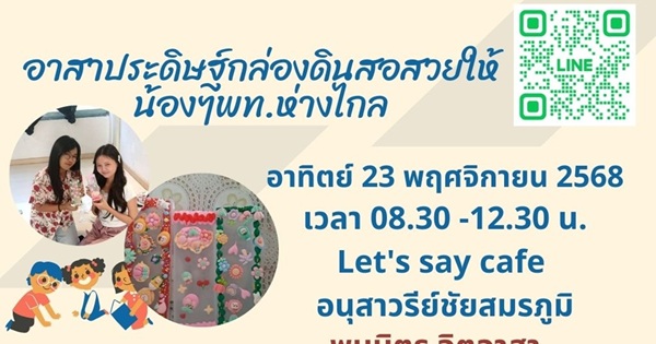 ค่ายอาสาประดิษฐ์กล่องดินสอสวยๆให้น้องๆ พท.ห่างไกล อาทิตย์ 23 พย 2568 ชวนมาสร้างรอยยิ้มให้เด็กๆ ผ่าน "กล่องดินสอแห่งความสุข" มาร่วมกันทำกล่องดินสอสวยๆ ส่งต่อกำลังใจให้น้องๆ ในพท.ห่างไกล