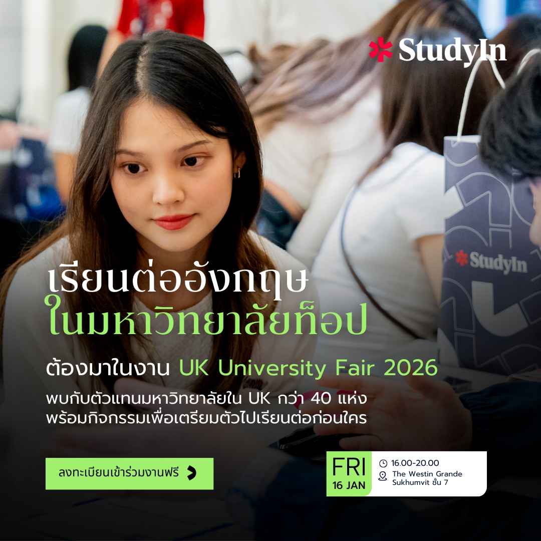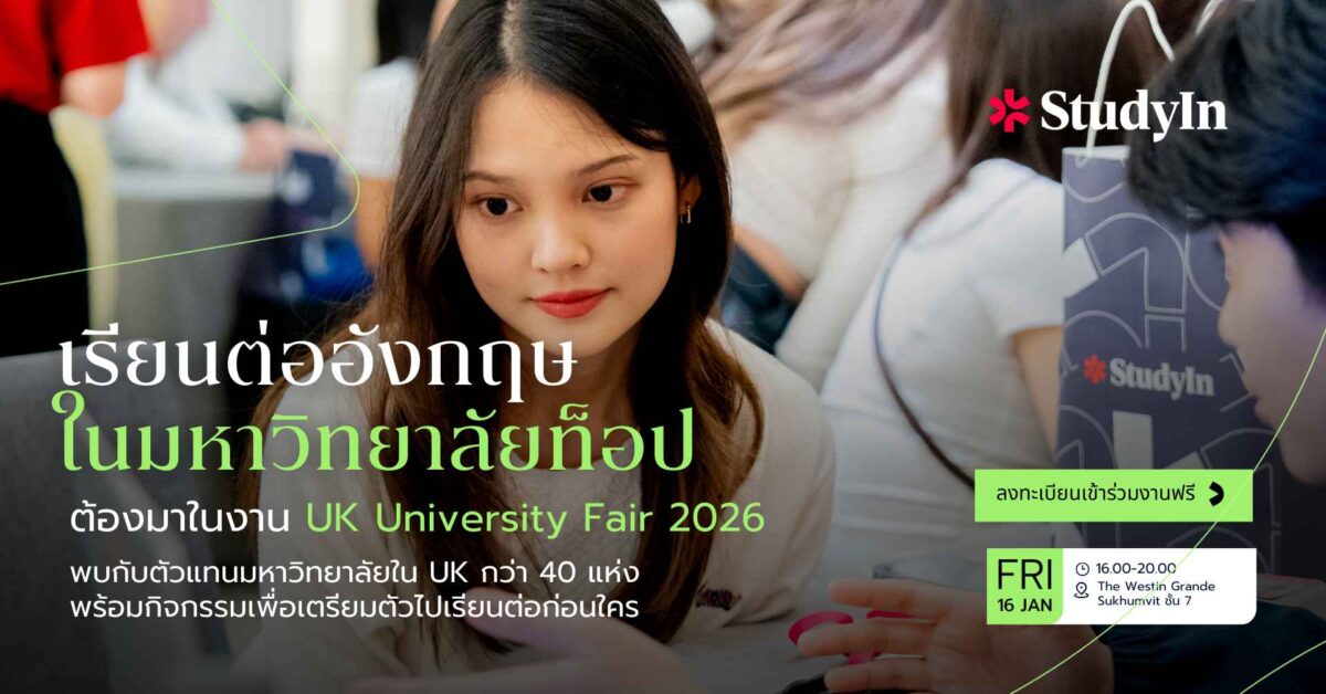 📌 อยากเรียนต่ออังกฤษในมหาวิทยาลัยท็อป ต้องห้ามพลาด! งานเรียนต่อ 𝐔𝐊 𝐔𝐧𝐢𝐯𝐞𝐫𝐬𝐢𝐭𝐲 𝐅𝐚𝐢𝐫 𝟐𝟎𝟐𝟔💖 พบกับตัวแทนมหาวิทยาลัยใน 𝐔𝐊 กว่า 𝟒𝟎 แห่ง พร้อมกิจกรรมเพื่อเตรียมตัวไปเรียนต่ออีกมากมาย
