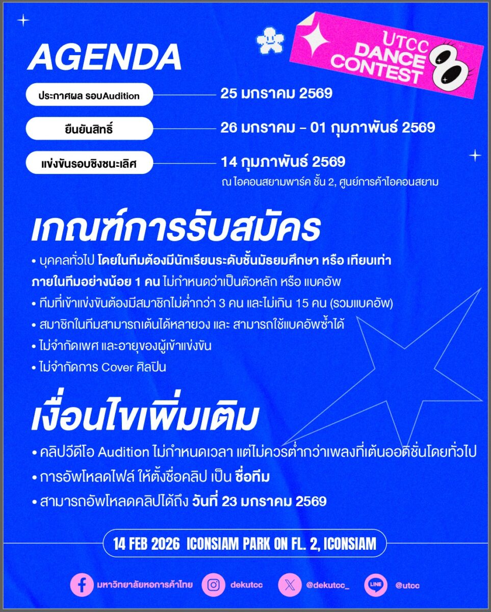 เปิดรับสมัคร UTCC DANCE CONTEST ครั้งที่ 8
