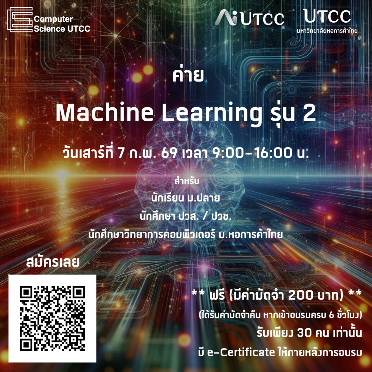 ในวันเสาร์ที่ 7 กุมภาพันธ์ 2569 เวลา 9:00 – 16:00 น. ณ ห้องปฏิบัติการคอมพิวเตอร์ 1305A อาคาร 1 ชั้น 3 ม.หอการค้าไทย