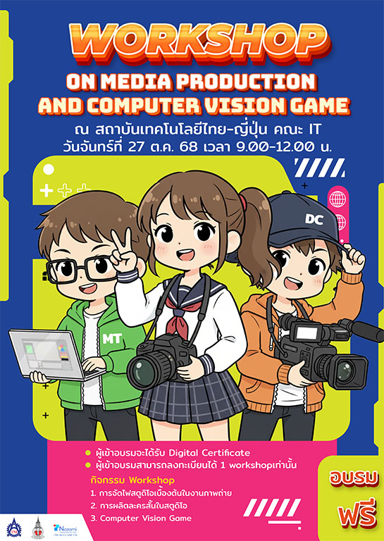 กิจกรรมดีๆมาฝากจ้า……ปิดเทอมนี้ ขอเชิญน้องๆมัธยมปลายหรือเทียบเท่าเข้าอบรมฟรี โดยมีรายการที่น่าสนใจดังนี้ (อบรมเชิงปฏิบัติการวันจันทร์ที่ 27 ต.ค.68 เวลา 9.00-12.00 น. ณ สถาบันเทคโนโลยีไทย-ญี่ปุ่น