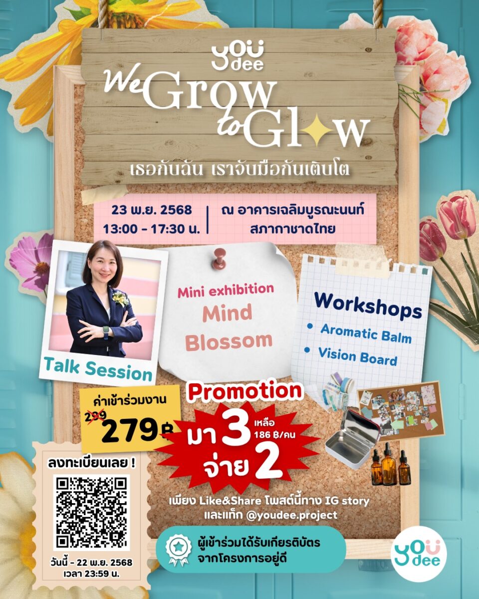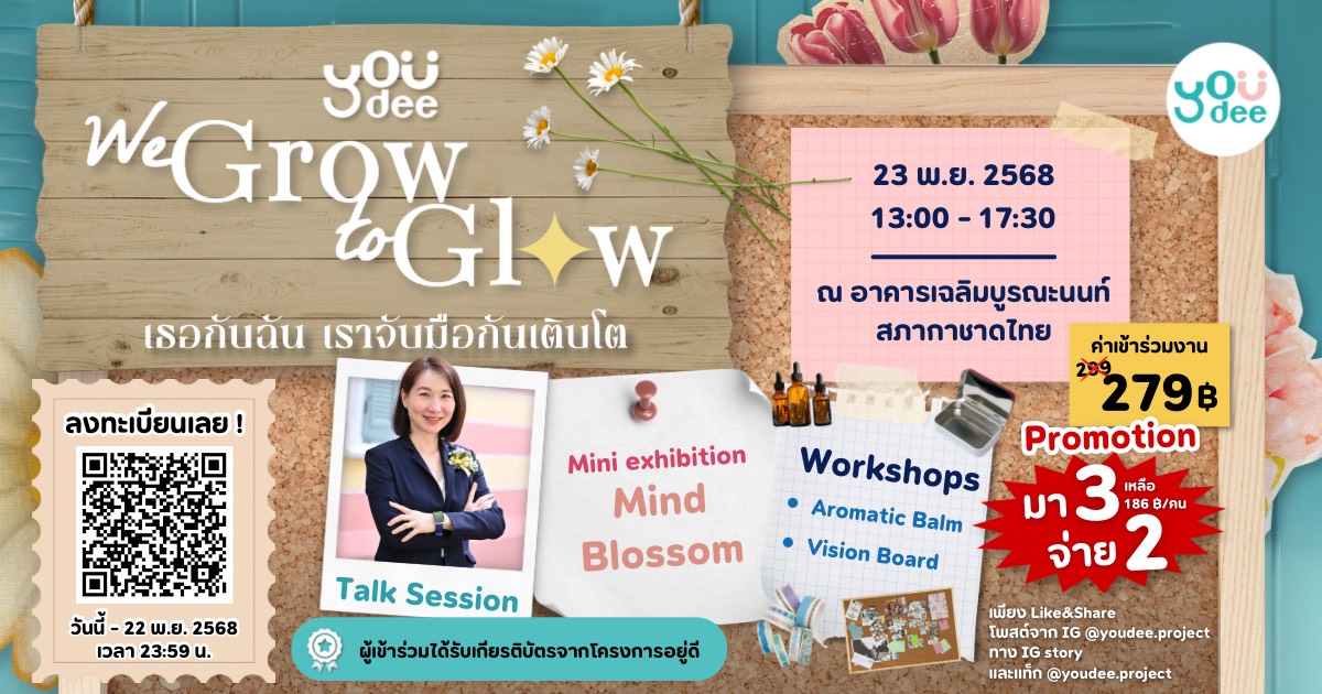 ไหนใครคิดถึงกิจกรรมจากอยู่ดีบ้าง ยกมือ 🙋🏻 พวกเรากลับมาแล้วกับ กิจกรรม “เธอกับฉัน เราจับมือกันเติบโต YouDee We Grow to Glow” โดย The YouDee Project 🌱✨