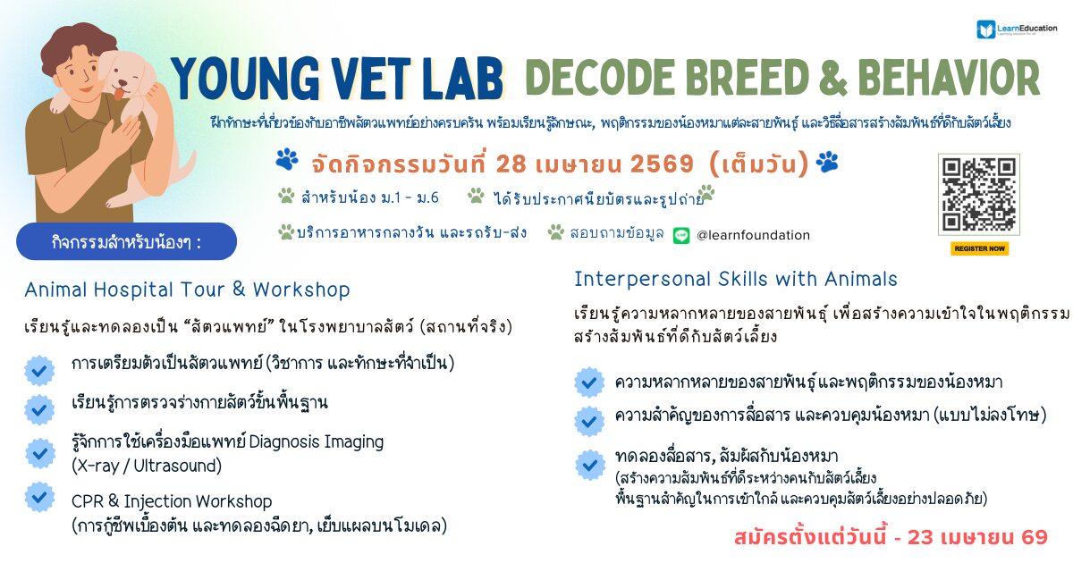 และพาไปเรียนรู้ลักษณะ,พฤติกรรมของน้องหมาแต่ละสายพันธุ์ และวิธีสื่อสารสร้างสัมพันธ์ที่ดีกับสัตว์เลี้ยง พร้อมสัมผัสและทดลองสื่อสารกับน้องหมาอีกหนึ่งทักษะสำคัญของการก้าวสู่อาชีพสัตวแพทย์ โดยกิจกรรมทั้งหมดอยู่ภายใต้การดูของสัตวแพทย์และผู้เชี่ยวชาญอย่างใกล้ขิด