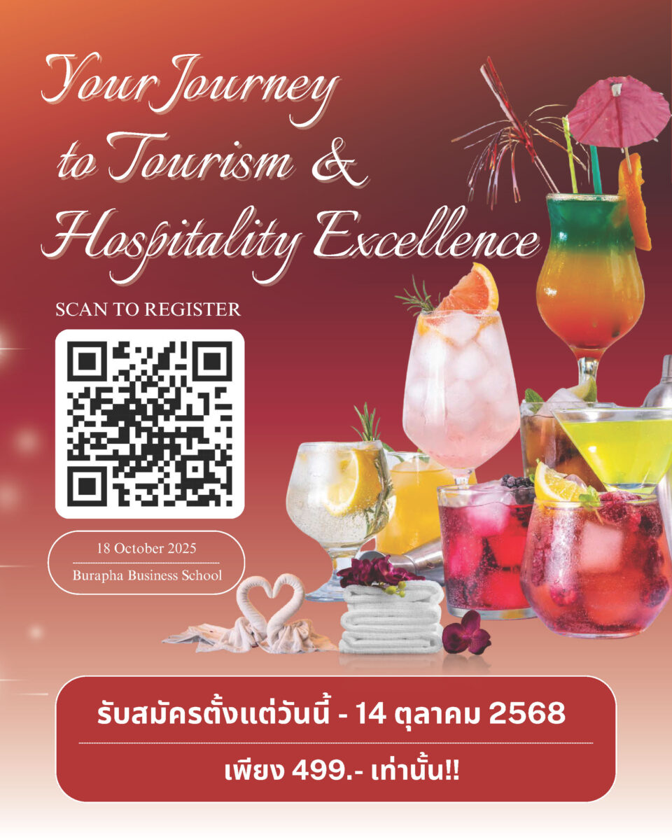 น้องๆ มัธยมศึกษาตอนปลาย ที่มีความสนใจด้านการโรงแรมและการท่องเที่ยว มาแล้ว! โครงการ Your Journey to Tourism & Hospitality Excellence โครงการเชิงปฏิบัติ ที่เกี่ยวข้องกับสาขาการจัดการฯการท่องเที่ยวและการโรงแรม ของคณะบริหารธุรกิจ มหาวิทยาลัยบูรพา